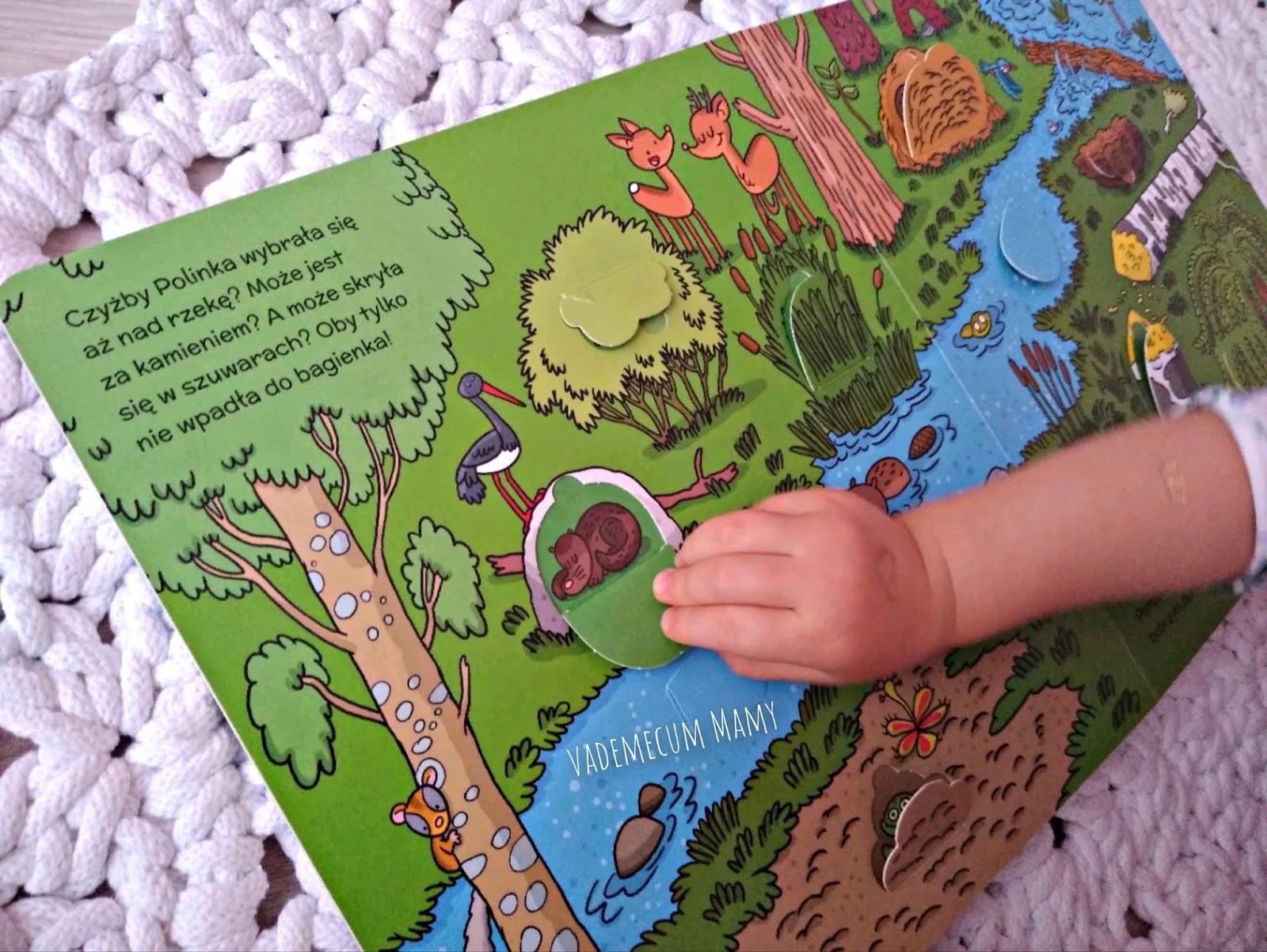 Książeczka przedstawia historię żubrzej rodziny. Mama Porada, Tata Pomruk, Żubr Pompik i jego młodsza siostra Polinka. No właśnie... Ale gdzie tak właściwie jest Polinka? Hoooop, hoooop! Polinko! Gdzie jesteś? Polinka najwyraźniej chciała pobawić się w chowanego i ukryła się tak sprytnie, że Pompik przez długi czas nie potrafił jej znaleźć...gdzie schowała się Polinka? Przekonajcie się sami sięgając po tę wciągającą i tajemniczą publikację.